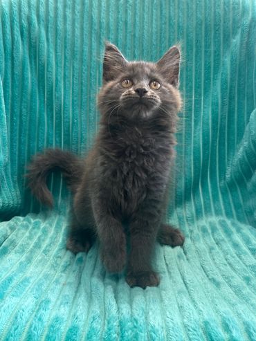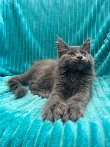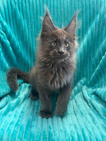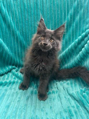 I'm an affectionate Blue Tortie Tabby Maine Coon Female.