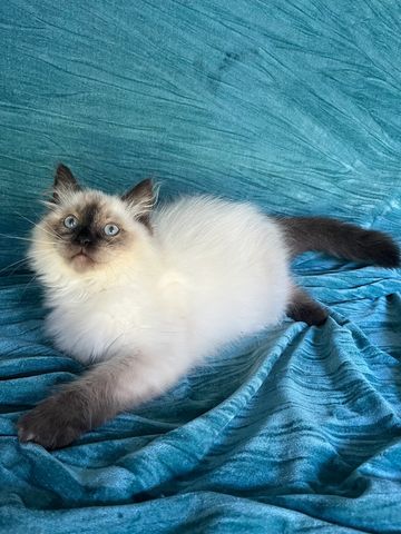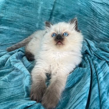 I'm a Beautiful Chocolate Point Ragdoll Female.