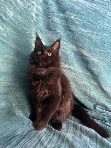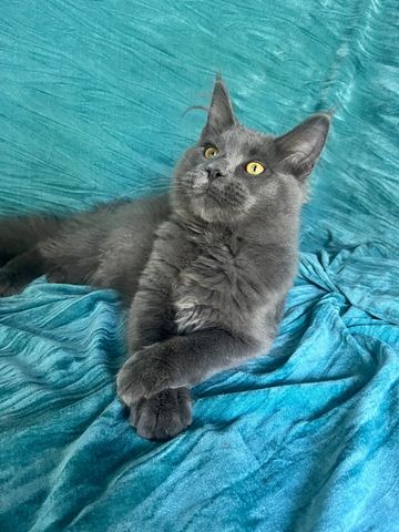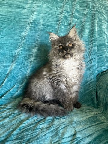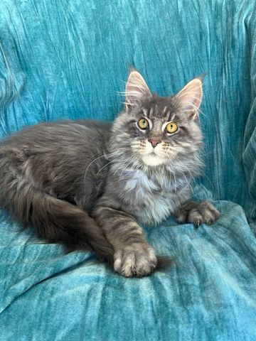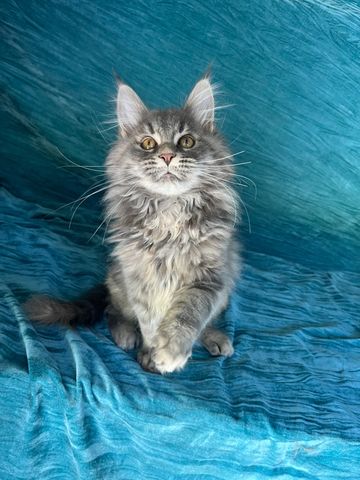 I'm a Cheeky Blue Tabby Tortie Maine Coon Female.